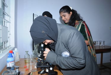 In the Biology Lab, students develop essential scientific skills such as careful observation, accurate drawing, systematic recording, and analytical interpretation. They learn to use laboratory instruments like microscopes, microtomes, slides, and biological models with confidence. Practical sessions include activities such as preparing temporary slides, studying plant and animal tissues, identifying specimens, performing physiological experiments, and understanding ecological principles. These experiences prepare students effectively for board practical examinations and open pathways for higher studies in medicine, nursing, biotechnology, agriculture, microbiology, and life sciences.