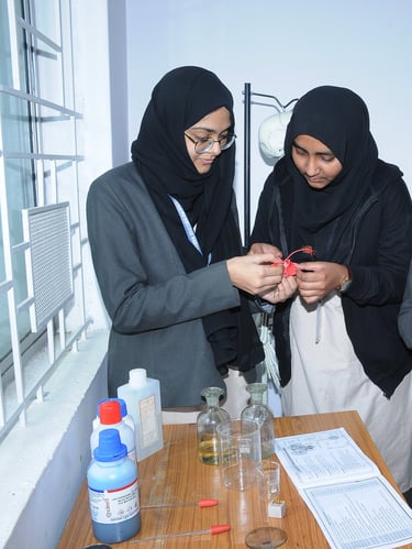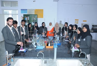 Beyond academic learning, the Chemistry Laboratory fosters discipline, safety awareness, teamwork, and curiosity. Students learn to follow safety protocols, handle chemicals responsibly, and maintain cleanliness and orderliness within the lab. Group experiments encourage cooperation, problem-solving, and communication among peers. The laboratory environment nurtures a scientific attitude—encouraging students to question, explore, and discover. Overall, the Chemistry Laboratory plays a key role in developing skilled, confident, and responsible learners who are well-prepared for future scientific and professional pursuits.