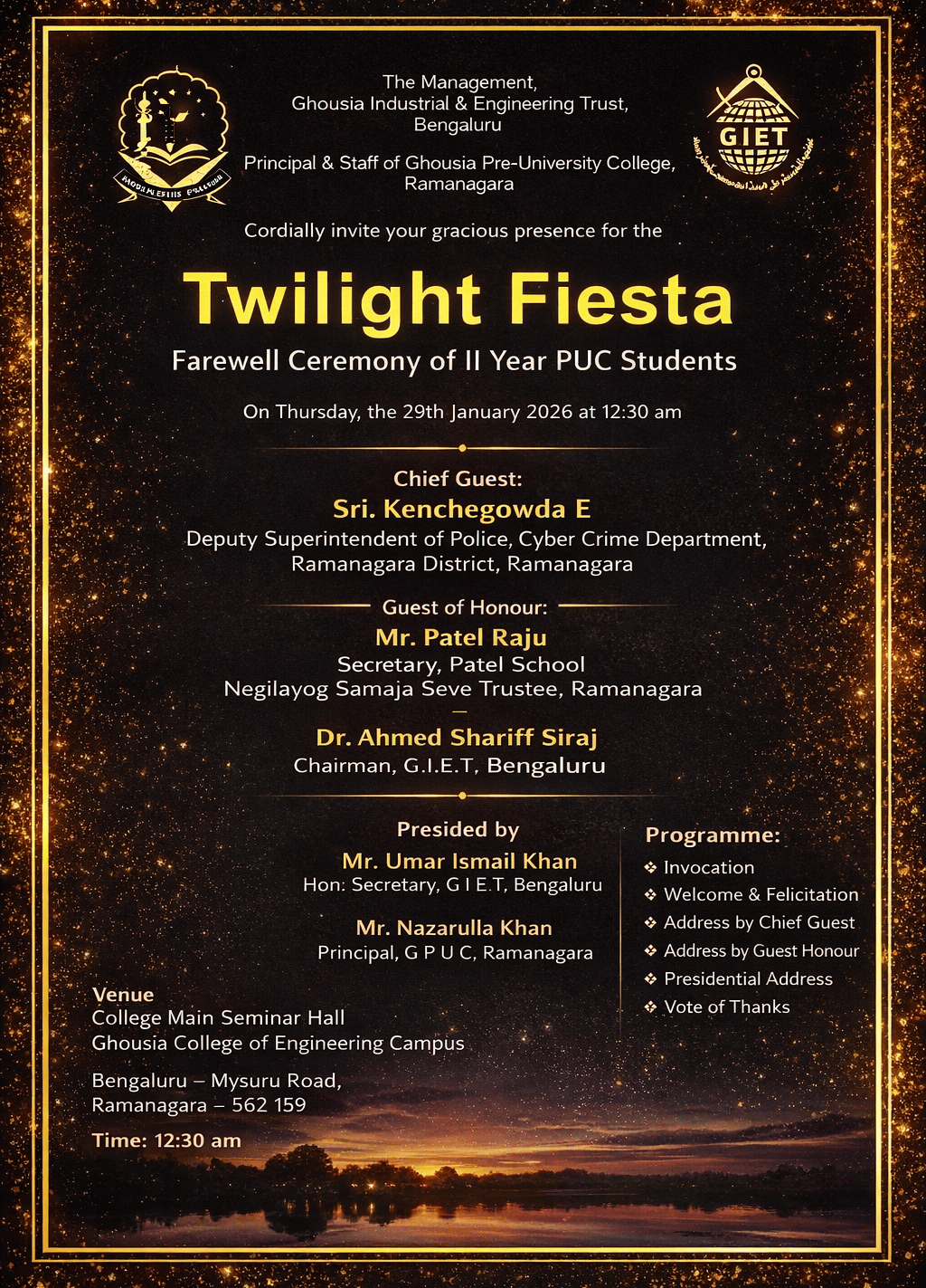 Ghousia College of Engineering Campus, Bangalore Mysore Road, Ramanagara Dist., Karnataka-562159, India